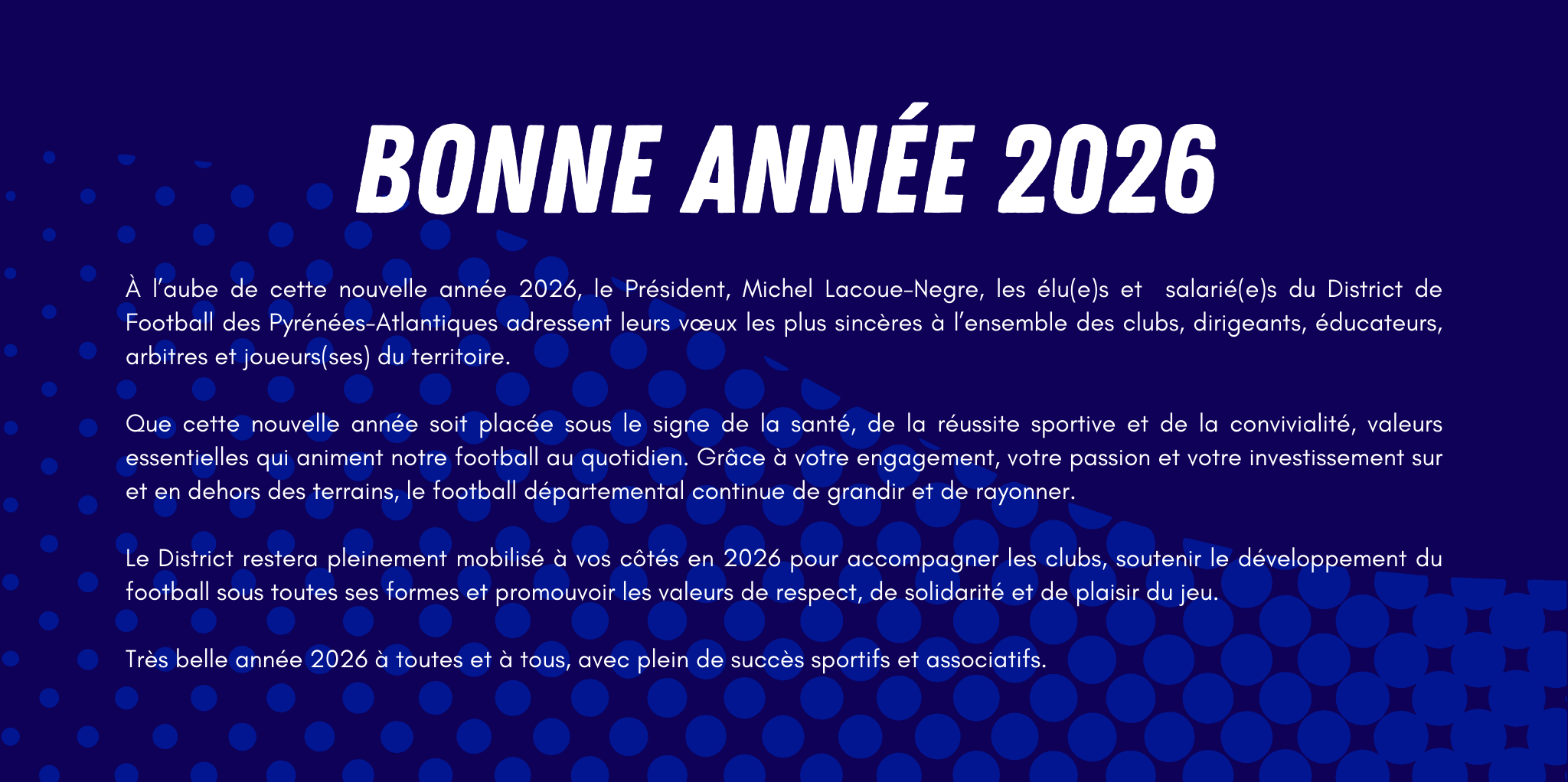 Les dates des finales de la saison 2025/2026 sont officiellement connues ! Les lieux seront quant à eux révélés la semaine prochaine, mais vous pouvez déjà bloquer votre agenda. FINALES FESTIVAL FOOT U13 Samedi 28 mars 2026 FINALES COUPES SÉNIORS Vendredi 8 mai 2026 : Coupe Féminine Cr...