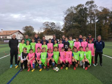 Parallèlement sur le terrain synthétique du Hasparren FC, les U13 Garçons qui ont passé les deux premières étapes de détections se sont retrouvés pour la première fois tous ensemble. Un groupe départemental qui a du, pour la plupart, découvrir le foot à 11 lors d’une séance matinale. La pause de midi a été l’occasion d’échanger avec Patxi Idiart, formé à Hasparren et désormais joueur des Chamois Niortais après une année au Pôle Espoir de Talence, et Sébastien Chabbert, ancien gardien de Cannes, Lens, Metz ou encore Monaco. La journée s’est clôturée par une opposition amicale contre les U14 du Hasparren FC (2-2). Une très bonne journée avec le renfort des membres la commission technique : Tito Daydé, Pierre Irastorza, Sébastien Chabbert, Camille Echeveste.