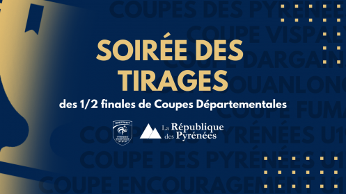 Le tirage au sort des demies-finales des coupes départementales se tiendra ce jeudi 24 mars à partir de 18h30 au siège de Pyrénées Presse à Pau.